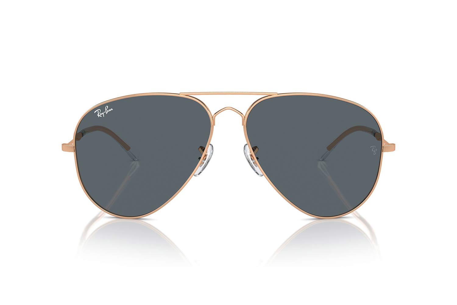 Γυαλιά Ηλίου Rayban  με μεταλλικό χρυσό-μπρονζέ σκελετό και μπλε σκούρους φακούς.