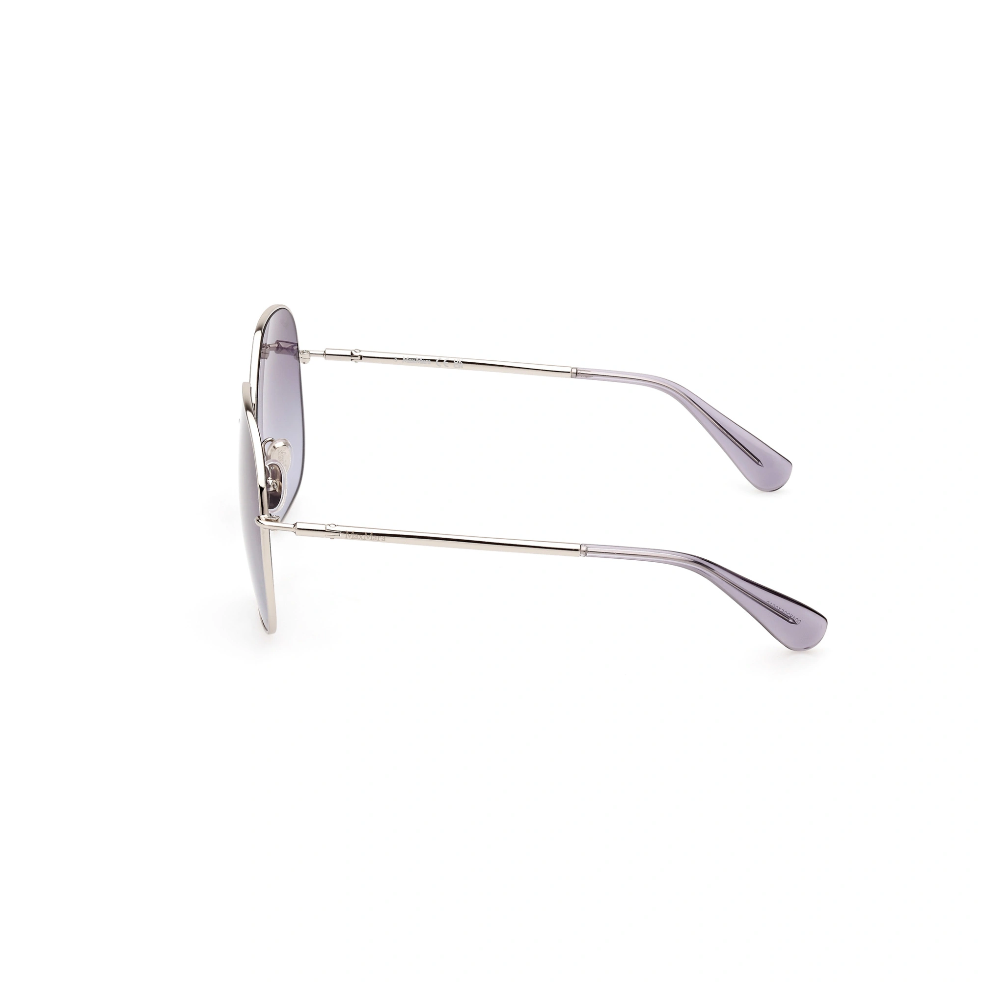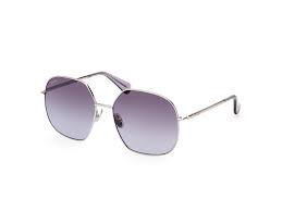 Γυαλιά Ηλίου Max Mara με ασημί μεταλλικό σκελετό .Οι φακοί του είναι γκρι degrade.