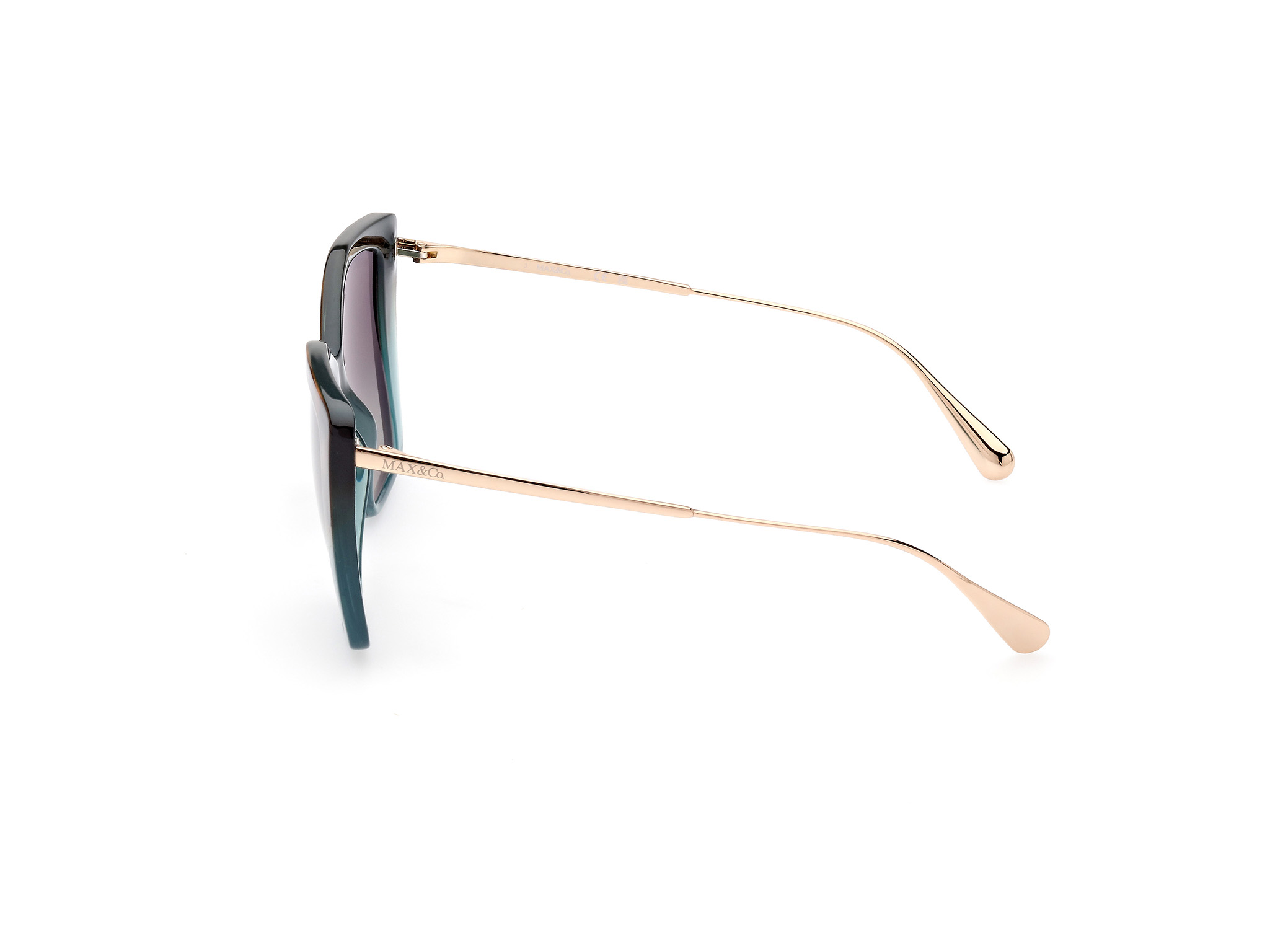 Γυαλιά Ηλίου Max co Γυναικεία κοκκάλινα με καφέ τυρκουάζ σκελετό και πράσινους degrade φακούς.