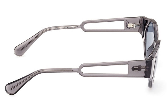 Γυαλιά Ηλίου Max co με διάφανο γκρι κοκκάλινο σκελετό. Οι φακοί του είναι γκρι σκούρο.