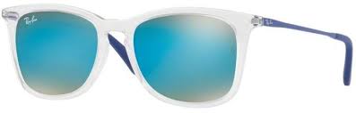 Γυαλιά Ηλίου ray-ban παιδικά με κοκκάλινο διάφανο σκελετό και μπλε καθρέπτη φακούς.