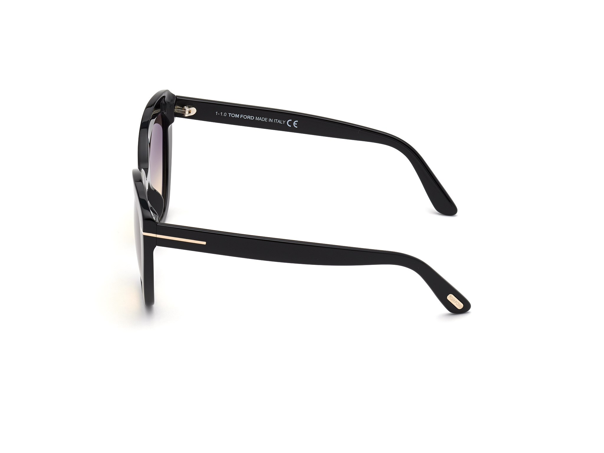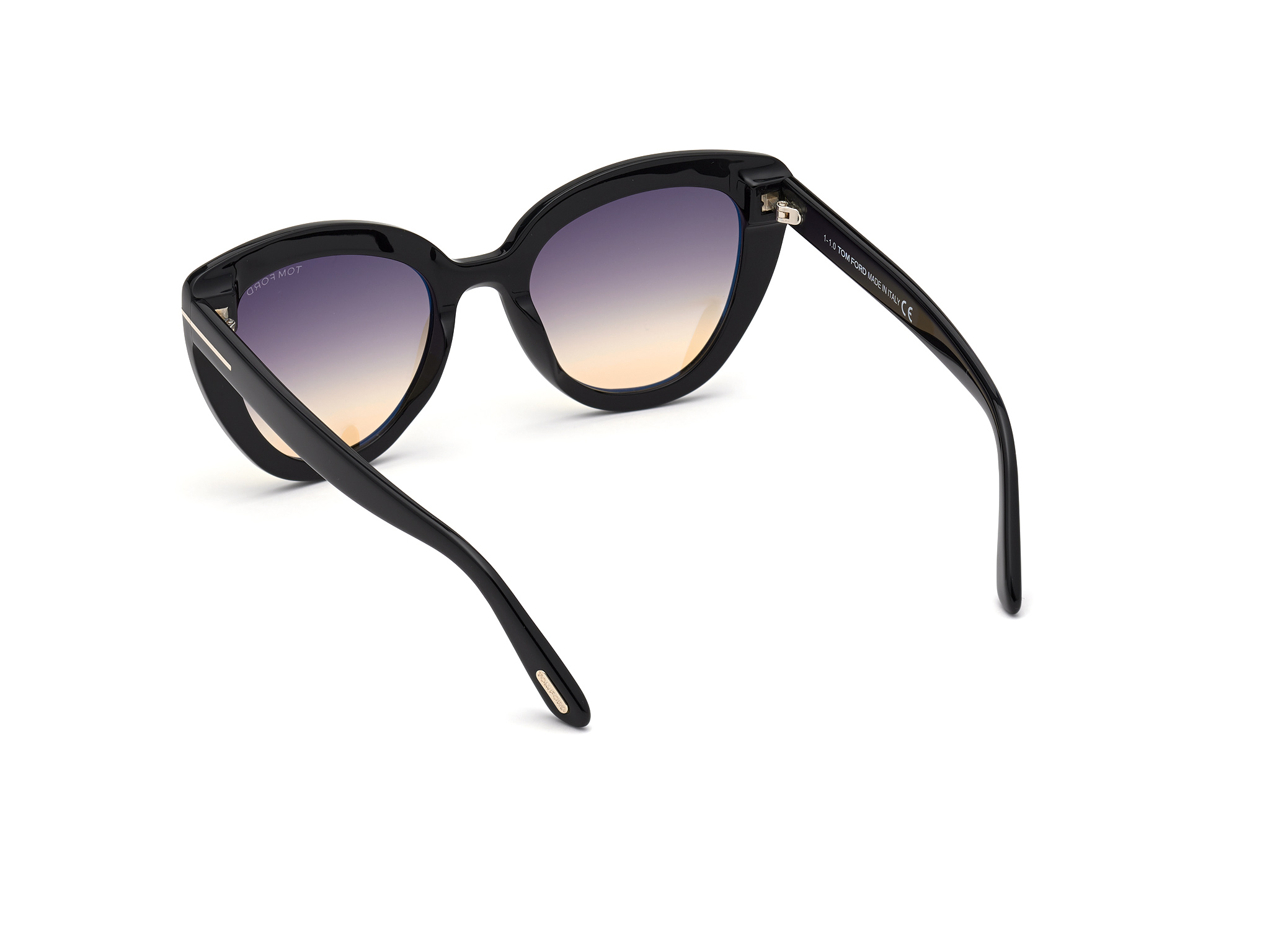 Γυαλιά Ηλίου Tom Ford με κοκκάλινο μαύρο σκελετό. Οι φακοί του είναι γκρι-καφέ degrade .